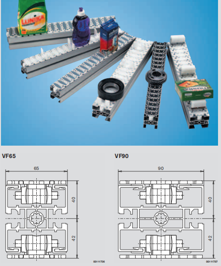VarioFlow 這種新的力士樂鏈板輸送系 統(tǒng)具明顯的優(yōu)點:它在擁有比常規(guī)鏈板 輸送系統(tǒng)更好的技術(shù)性能的同時經(jīng)濟性 更好。 由于鏈板特別穩(wěn)定,所以VarioFlow 的鏈板拉力可達 1250 N (防靜電款式: Fmax = 400 N ! )。由于鏈板表面幾乎完全 封閉,所以即使是很小的部件也能順利 輸送。利用力士樂齊全的鏈板產(chǎn)品系列 能夠方便地完成不同的輸送任務(wù)。 VarioFlow 是一種適用于多種應(yīng)用范圍 的經(jīng)濟型輸送系統(tǒng)。65 mm 和 90 mm 兩種鏈板寬度適用于不同的應(yīng)用:從機 械制造業(yè)、電子工業(yè)到化妝品行業(yè)隨處 可用。